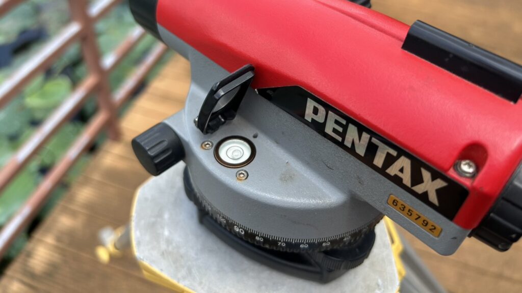 เมื่อเราตั้งขาตั้งกล้องอย่างมั่นคงแข็งแรงแล้ว เราเริ่มติดตั้งกล้องกับขาตั้งกล้องให้แน่น จากภาพคือ ขั้นตอนถัดมาจากการตั้งกล้อง คือการปรับฟองน้ำระดับ(Level Bubble) หรือ หยดน้ำตามภาพ ให้ตรงจุดเพื่อให้กล้องอยู่แนวระนาบตามมาตรฐานก่อนส่องกล้องวัดที่ดินครับ
